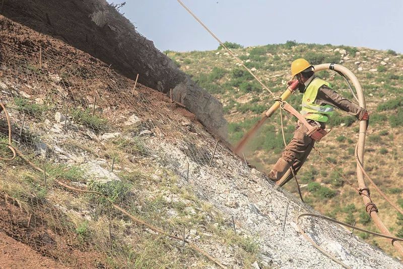 ▼大青山邊坡修復(fù)項目便采用了混噴植生技術(shù):蒙草團隊選用抗旱性強、根系發(fā)達、耐瘠薄的鄉(xiāng)土植物種質(zhì),混合保水材料、有機物質(zhì),對巖體進行噴播修復(fù)。
