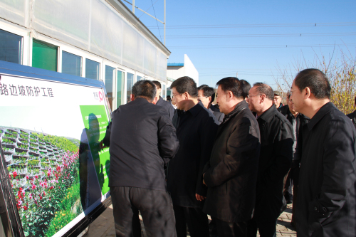聽(tīng)取蒙草在公路邊坡防護(hù)的指導(dǎo)原則、蒙草植物、施工技術(shù)介紹,并觀看蒙草護(hù)坡的成功案例