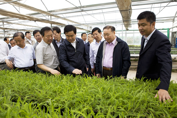 當(dāng)日上午,那順孟和一行實(shí)地視察了內(nèi)蒙古和信園蒙草抗旱綠化股份有限公司育苗基地。他強(qiáng)調(diào),在今后的發(fā)展中,要用工業(yè)化理念謀劃農(nóng)業(yè)發(fā)展,要把工業(yè)與農(nóng)業(yè)相融化,很好地培育蒙草抗旱這樣的朝陽產(chǎn)業(yè),把和林縣打造成為具有較高水平的首府衛(wèi)星城,為首府經(jīng)濟(jì)實(shí)現(xiàn)又好又快發(fā)展做出貢獻(xiàn)。