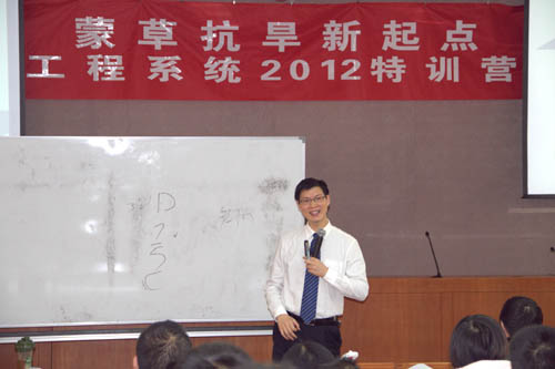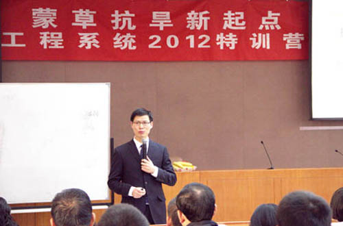 12月11日,蒙草抗旱新起點(diǎn)·2012工程系統(tǒng)特訓(xùn)營(yíng)的室內(nèi)課程培訓(xùn)進(jìn)入第二天。全天是由段燁老師主講《性格解密與鉆石團(tuán)隊(duì)》,除全程參與培訓(xùn)的人員參加外,公司部長(zhǎng)級(jí)以上人員也都聆聽了講座。