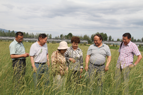 領導專家們深入土左基地的蒙農4號新麥草種植明地