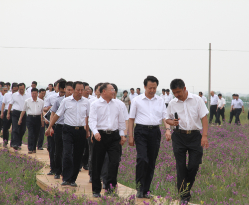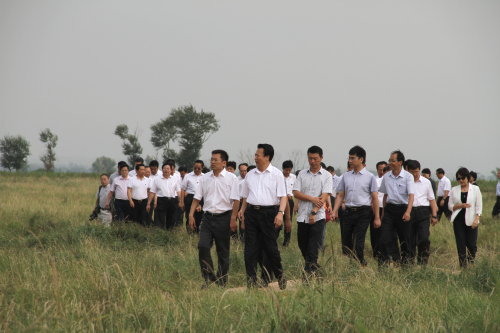 觀摩檢查組行走在萬(wàn)畝草原建設(shè)現(xiàn)場(chǎng)