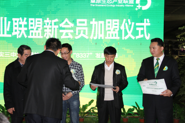 2014年1月10至11日,草原生態(tài)產(chǎn)業(yè)聯(lián)盟第一次例會(huì)在山路能源召開(kāi)。會(huì)上,舉行了草原生態(tài)產(chǎn)業(yè)聯(lián)盟新成員入會(huì)儀式。內(nèi)蒙古烏拉特前旗青松草業(yè)貿(mào)易有限責(zé)任公司、赤峰瑞盛牧草種子有限責(zé)任公司、內(nèi)蒙古優(yōu)牧特科技股份有限公司、赤峰中農(nóng)大生科技有限責(zé)任公司4家草原生態(tài)產(chǎn)業(yè)相關(guān)單位加入聯(lián)盟。