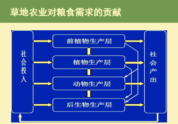 任繼周先生提出:人的食物應該是多種多樣的。因此,奠定了草地農業(yè)豐富多樣的基礎。這也是草地農業(yè)對糧食需求做出的貢獻,草地農業(yè)已經不僅僅是簡單的谷物生產。同時,任老也就“耕地農業(yè)” 向“草地農業(yè)”的轉型提出一些建議:充分利用飼用植物資源,發(fā)展多種經營;大力發(fā)展草地畜牧業(yè);培肥地力,藏糧于草;草地農業(yè)系統(tǒng)耦合增效顯著.......