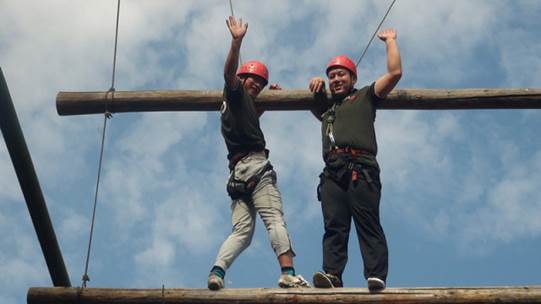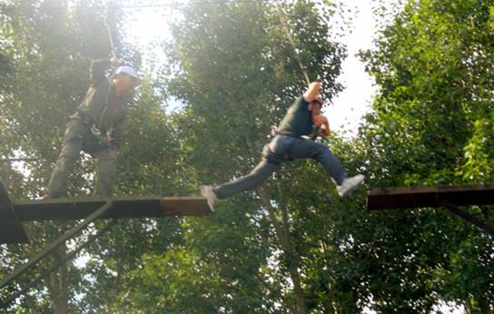 ★高空斷橋考驗(yàn)團(tuán)隊(duì)成員的“亮劍精神”,小伙伴們成功克服心理畏懼,可謂“斷橋一小步、人生一大步”。
