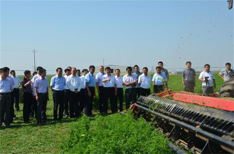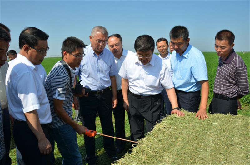 巴特爾主席一行頂著烈日酷暑,來到了我公司的生產(chǎn)現(xiàn)場實地查看了優(yōu)質(zhì)牧草的收割情況。在我公司種植的紫花苜蓿生產(chǎn)基地里,巴特爾主席詳細聽取了阿旗政 府副旗長魏二利和蒙草基地企業(yè)負責人張瑞林的具體工作匯報,并詳細詢問了解了紫花苜蓿草種植、收獲、貯存及銷售等多個生產(chǎn)經(jīng)營環(huán)節(jié)的情況。面對一望無際、 草香四溢、滿目青翠的人工草場,巴特爾主席十分高興。