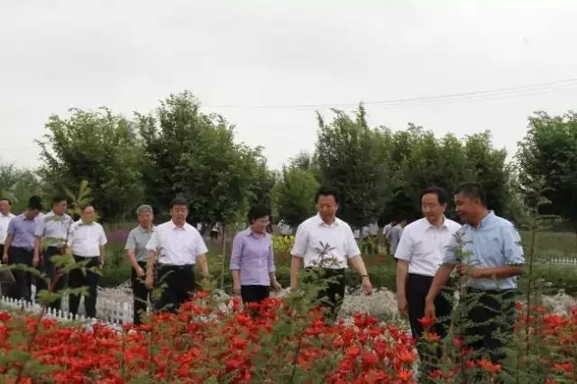 蒙草董事長(zhǎng)王召明(右一)向考察組介紹蒙草種質(zhì)資源圃,考察組成員依次為:寧夏回族自治區(qū)黨委書記李建華,內(nèi)蒙古自治區(qū)黨委書記王君,寧夏回族自治區(qū)主席劉慧,內(nèi)蒙古自治區(qū)主席巴特爾