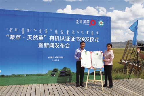 2015年8月,“蒙草·天然草”240萬畝草場(chǎng)通過有機(jī)認(rèn)證。