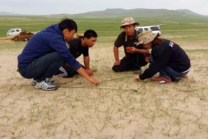 探尋這片草原的保護(hù)之路,我們不難發(fā)現(xiàn)其中的奧秘所在!烏拉蓋草原退化主要出現(xiàn)在上世紀(jì)90年代中期之后,“三化”草原面積為225.73萬畝,相比于2009年增加了5.66%,數(shù)據(jù)顯示烏拉蓋草原“三化”面積仍在不斷增加。直到2015年,蒙草公司生態(tài)系統(tǒng)研究院院長邢旗和她的科研團(tuán)隊(duì)一起深入烏拉蓋草原腹地,通過對(duì)2010年和2014年TM衛(wèi)星遙感影像數(shù)據(jù)判讀,結(jié)合地面調(diào)查和數(shù)據(jù)收集對(duì)烏拉蓋草原修復(fù)進(jìn)行立體分析。采用機(jī)械沙障、生物沙障及枯草鋪設(shè)等方式對(duì)不同程度的沙化地區(qū)進(jìn)行組合式修復(fù)。