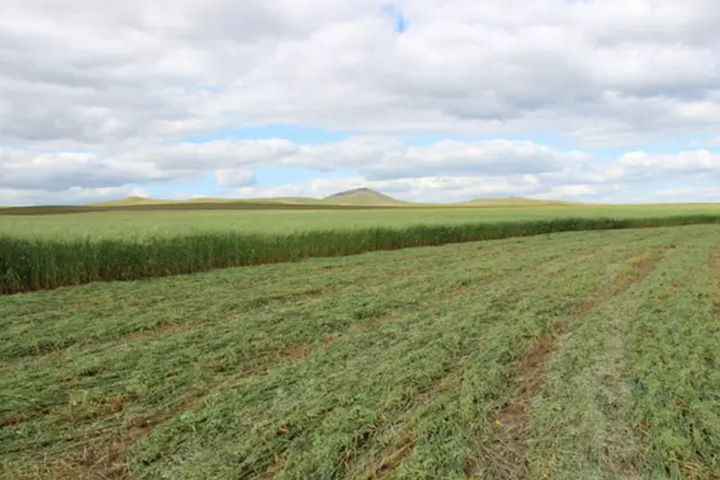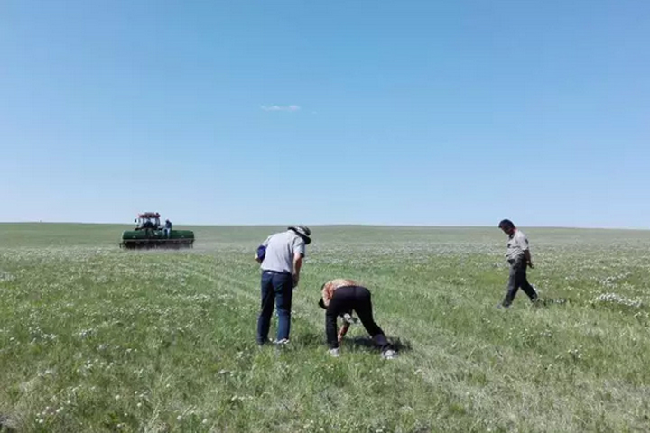 近年來(lái),由于草原退化、草原禁牧,導(dǎo)致烏拉蓋地區(qū)天然草的產(chǎn)量無(wú)法滿足家畜在冬季對(duì)牧草的需求。2015年蒙草團(tuán)隊(duì)進(jìn)入烏拉蓋草原修復(fù)地區(qū),立體分析了當(dāng)?shù)氐闹脖弧⑼寥?、牧草產(chǎn)量等數(shù)據(jù)。研究人員選擇不同品種的一年生與多年生、豆科與禾本科牧草混播的方式建植人工草地。通過(guò)增加土壤氮素和有機(jī)質(zhì)含量,提高牧草蛋白質(zhì)的質(zhì)量。經(jīng)過(guò)一輪的修復(fù)治理后,生態(tài)修復(fù)與牧草業(yè)集成取得了較好的成果。烏拉蓋402畝人工草地共收獲牧草143.5噸,相當(dāng)于當(dāng)?shù)靥烊荒敛莓a(chǎn)量的1.8—4.3倍。扣除成本投入,牧草凈收入為7.7萬(wàn)元。