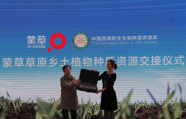 活動(dòng)期間,蒙草將蒙草草原鄉(xiāng)土植物種質(zhì)贈(zèng)送給中國(guó)西南野生生物種質(zhì)資源庫,通過以草為媒搭建生態(tài)保護(hù)友誼的橋梁。