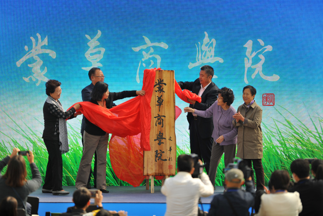 蒙草集團(tuán)董事長(zhǎng)王召明先生及蒙草研發(fā)團(tuán)隊(duì)為商學(xué)院揭牌