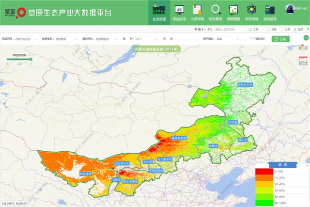 蒙草草原生態(tài)大數(shù)據(jù)平臺(tái)植被覆蓋度頁(yè)面