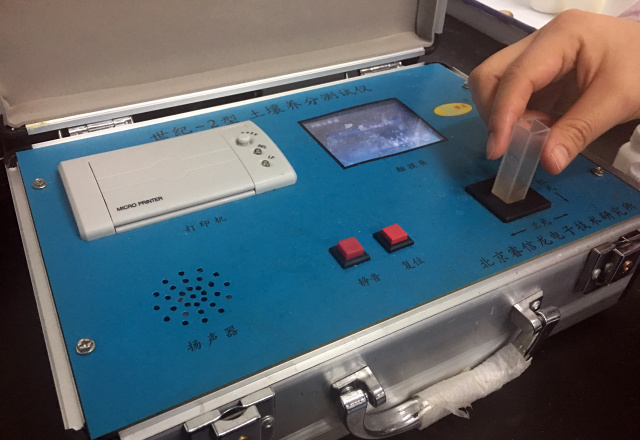 ? 測出土壤PH值、有機(jī)質(zhì)、速效氮等七項(xiàng)指標(biāo);