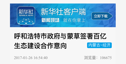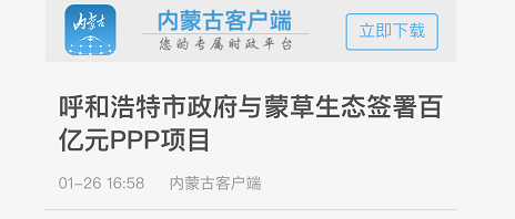 多家媒體熱議蒙草簽署百億級(jí)PPP項(xiàng)目