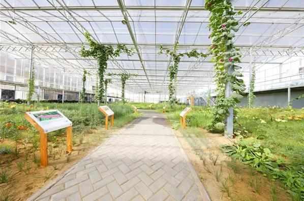 在荒漠腹地,蒙草建成了10兆瓦的農(nóng)牧業(yè)光伏區(qū)和占地4882平方米的阿拉善荒漠生態(tài)植物館。光伏采集區(qū)主要分布在土層淺、巖石裸露的區(qū)域,光伏板下與板間種植荒漠牧草植物,體現(xiàn)綠色能源和綠色生態(tài)的“雙綠”理念。植物館通過阿拉善荒漠化植物、水土展示區(qū)及草原大數(shù)據(jù)導(dǎo)產(chǎn)平臺(tái)展示區(qū)、沙漠綠洲景觀展示區(qū)等展示,以活態(tài)與固態(tài)相結(jié)合的展示方式對(duì)阿拉善寶貴的荒漠植物資源進(jìn)行科普。