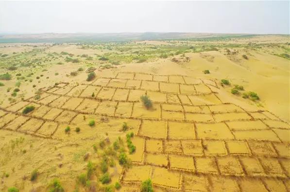 蒙草團(tuán)隊(duì)在沙漠中開展綜合沙障試驗(yàn)