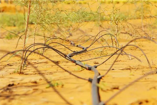 在實(shí)踐過程中,阿拉善團(tuán)隊(duì)推進(jìn)了3000畝荒漠生態(tài)修復(fù)項(xiàng)目,科研人員先選擇適宜在荒漠化環(huán)境中生長的植物進(jìn)行試種,再用草簾做機(jī)械沙障阻擋風(fēng)沙,選擇膜下滴灌補(bǔ)水方式栽植白刺、芨芨草等適生植物,構(gòu)筑植物沙障,讓機(jī)械沙障和生物沙障交替發(fā)揮作用,為植物樹立起一道防風(fēng)固沙的堅(jiān)實(shí)屏障,確保了修復(fù)成果的穩(wěn)定持續(xù)發(fā)展。