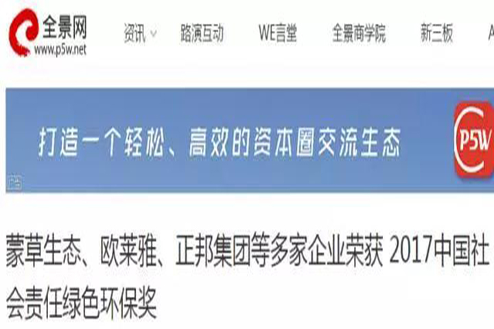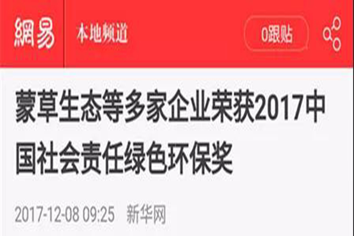 ▲蒙草獲“2017中國(guó)社會(huì)責(zé)任綠色環(huán)保獎(jiǎng)”