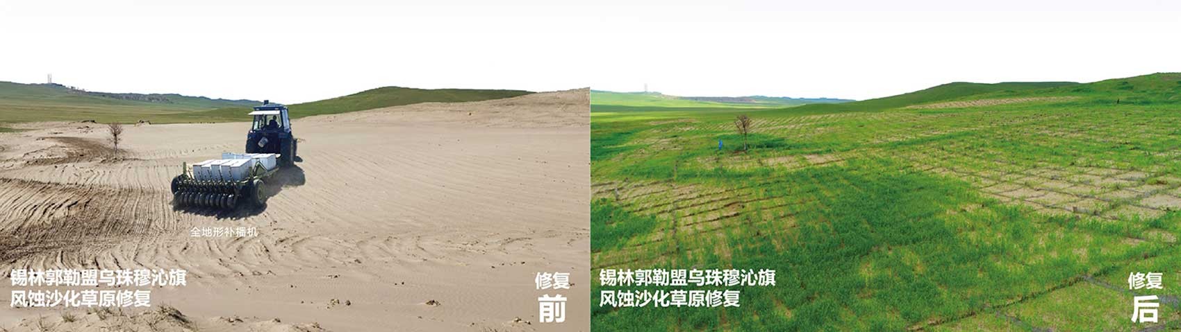 沖沙植樹機(jī)器人(蒙草自研)栽植灌木植物,植被覆蓋度上升30—40個(gè)百分點(diǎn),效果明顯