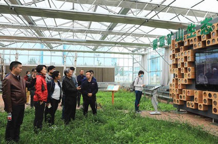 翁文杰一行深入蒙草種業(yè)中心,調(diào)研蒙草鄉(xiāng)土種質(zhì)資源科研、生產(chǎn)情況,調(diào)研蒙草生態(tài)大數(shù)據(jù)智慧指揮系統(tǒng),主要聽取“走路草坪”“停車場草坪”“節(jié)水園林”“智慧養(yǎng)護”等生態(tài)科技產(chǎn)品的介紹。